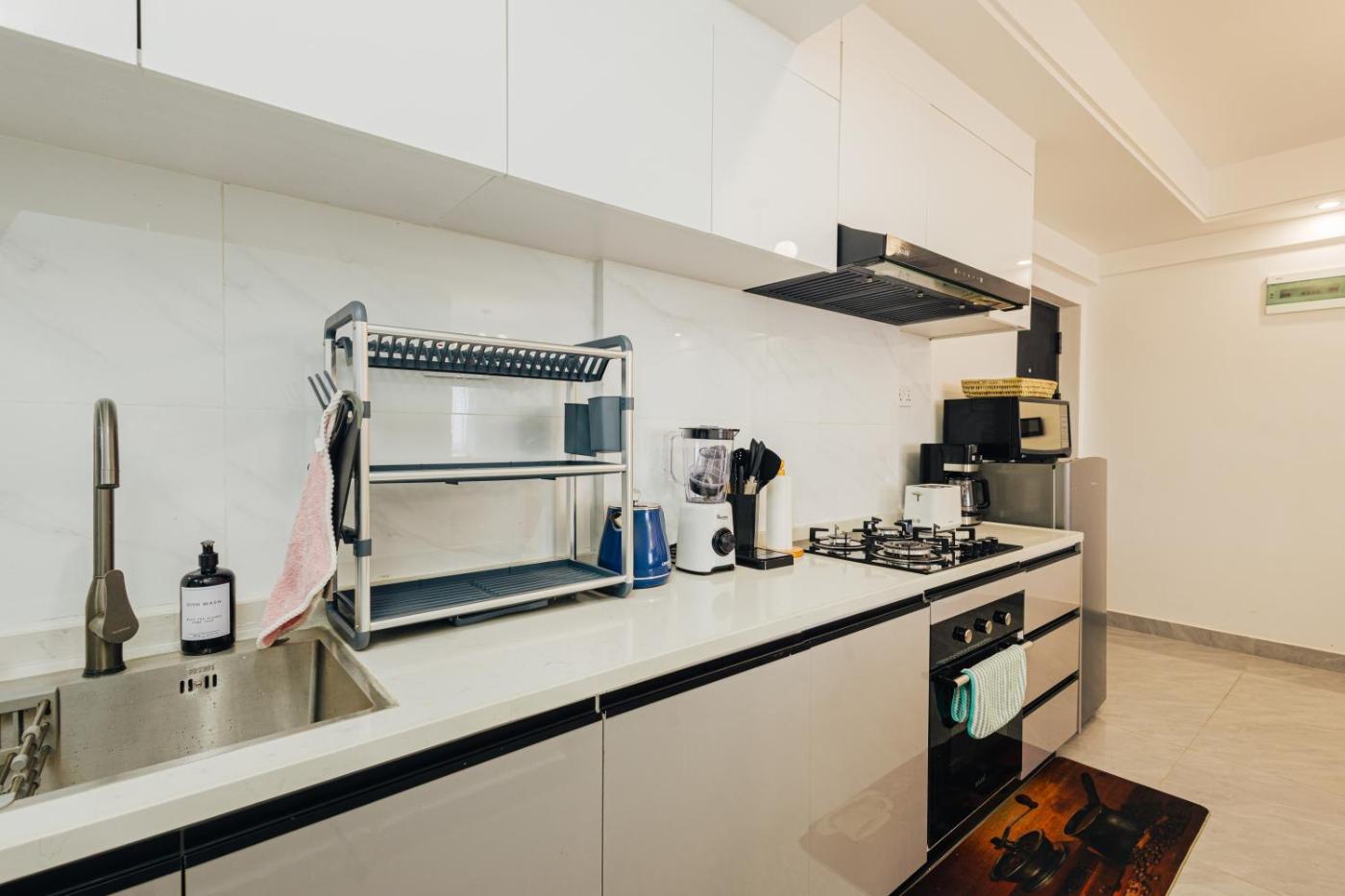 Two-Bedroom Apartment. Guests will have a special experience as the apartment offers a infinity pool. Featuring 2 bedrooms, this apartment offers 2 bathrooms with a walk-in shower, a seating area and terraceyou can relax. Meals can be prepared in the kitchen, which comes with a stovetop, a refrigerator, kitchenware and an oven. The apartment provides a washing machine, soundproof walls, a minibar, a flat-screen TV, as well as city views. The unit has 2 beds.